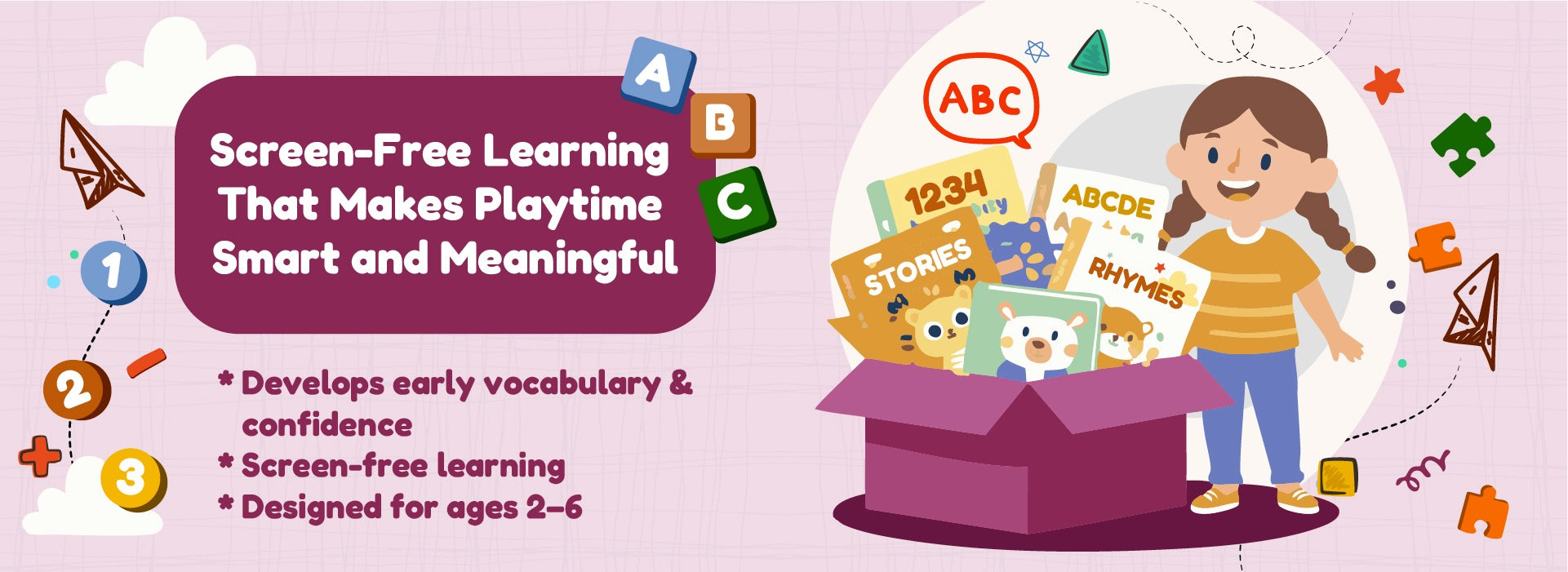 Our learning kits and books are specially designed for children from birth to 6 years. Each product clearly mentions the recommended age group to help you choose the right one for your child.
